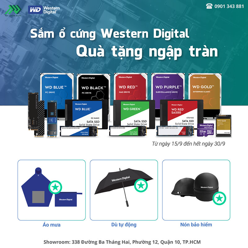 - Ổ cứng HDD WD Blue, Black, Red, Gold từ 2TB trở lên tặng áo mưa WD