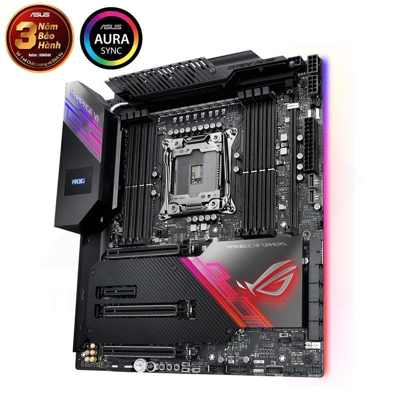 | Tính năng đặc biệt | Clear CMOS button Extreme Engine Digi+ : – MicroFine Alloy Chokes – 10K Black Metallic Capacitors ROG Extreme OC kit : – OptiMem III – ReTry button – Safe Boot button – Start button – Slow Mode – LN2 Mode – EZ Plug – FlexKey Button ProbeIt ROG Exclusive Software – Mem Tweakit – RAMCache III – RAMDisk – CPU-Z – GameFirst V – Sonic Radar III – Overwolf – Sonic Studio III + Sonic Studio Virtual Mixer ROG DIMM.2 module with heatsink ROG Aluminum heatsink cover ASUS Dual Intelligent Processors 5-Way Optimization by Dual Intelligent Processors 5 : |