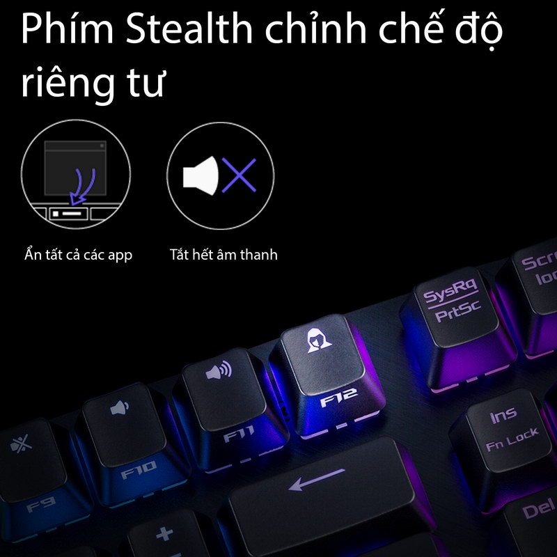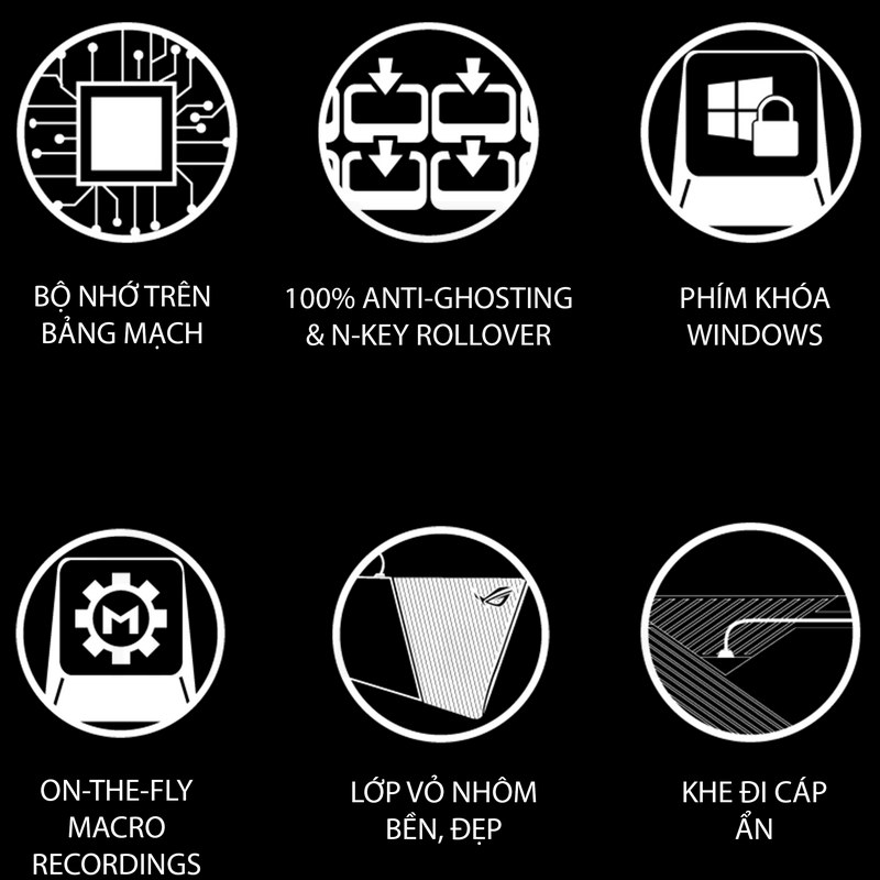 - Đèn LED RGB Aura Sync với hơn 16 triệu màu đồng bộ hóa không gian chơi game của bạn
